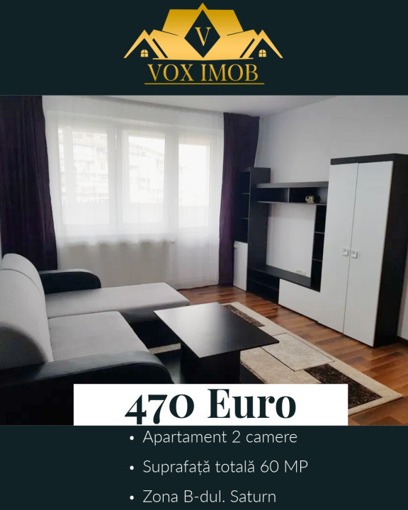 VOX IMOB vă propune spre închiriere un apartament cu 2 camere, situat într-o zonă excelentă din Brașov , Bulevardul Saturn,